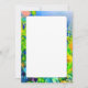 Une page vierge recto verso avec une bordure vibrante et aquarelle de bleus, violets, verts et orange.