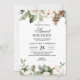Célébrez votre événement spécial dans une élégance hivernale intemporelle avec cette invitation à la verdure hivernale à l'aquarelle, mettant en vedette des branches de pin peintes à la main, des florales blanches douces, des pommes de pin et un feuillage hivernal subtil. La mise en page moderne et épurée crée un look raffiné et luxueux parfait pour les célébrations de Sweet Sixteen, les anniversaires, les fêtes de fin d'année, les douches de mariée, les douches de bébé, les mariages d'hiver, les fêtes de fiançailles, et plus encore.