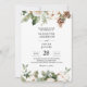 Invitation Aquarelle Arbre de pin vert d'hiver et fleurs blan