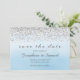 Enregistrez l'annonce de la date avec le faux design parties scintillant argent et l'arrière - plan d'aquarelle bleu ombre.