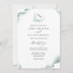 Elégante invitation de mariage avec de délicates taches d'aquarelle en cascade dans un mélange de mousse de mer, de sauge argentée, de teintes vert émeraude et de monogramme floral peint à la main fine et décoratif avec initiales de couple. Détails de calligraphie manuscrite moderne. Retour avec les mêmes taches d'aquarelle délicates de l'avant. Style élégant, simple et classe. Une partie de notre collection "Silver Sage Watercolor" avec une variété de produits de coordination disponibles. Visitez la collection entière à l'adresse suivante : https://www.zazzle.com/collections/silver_sage_watercolor_collection-119561740246839365