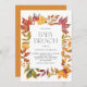 Cette invitation à brunch pour bébés d'automne présente un cadre de feuillage aquarelle dans des tons saisonniers riches comme l'ambre, la rouille et le vert olive. Le design saisit la chaleur et le charme de l'automne, ce qui en fait un choix parfait pour célébrer un bébé sur le chemin. Vous pouvez facilement personnaliser le texte avec vos propres détails d'événement, y compris le nom, la date, l'heure et l'emplacement. Les feuilles d'aquarelle douce et les tons terreux ajoutent une touche naturelle et élégante à votre petit brunch. Que vous planifiez une réunion ou une fête plus grande, cette invitation donne le ton parfait de l'automne.
