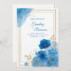 Invitation Aquarelle Azure Blue Floral & Gold Frame Mariage