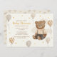 Illustration de style aquarelle adorable d'un ours en peluche et de ballons dans des couleurs neutres et tendance, parfaites pour les garçons, les filles ou les baby showers neutres de genre.