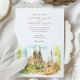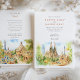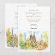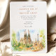Invitation vos proches pour fêter votre journée spéciale avec cette superbe suite de faire-part de mariage aquarelle, avec les points de repère emblématiques de Barcelone, Espagne. L'avant présente la majestueuse cathédrale Sagrada Família, son architecture complexe et ses flèches qui s'envolent dans un délicat style aquarelle, complétée par un gratte-ciel moderne et d'autres touches locales. Les beaux bâtiments et les décorations fleuries sont encadrés de verdure et de fleurs douces. Le revers, conçu pour "The Finer Details", présente une représentation vibrante du Park Güell, présentant son architecture fantaisiste et ses célèbres motifs en mosaïque, apportant une atmosphère animée et joyeuse. Cette suite est idéale pour un mariage à Barcelone, une fête à thème espagnol, ou pour les couples qui veulent célébrer leur amour pour l'art, l'histoire et le charme unique de Barcelone.