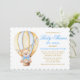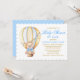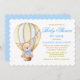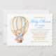 Aquarelle Blue Hot Air Balloon Teddy Bear avec Baby shower Blue Bow par Mail Invitation. Gold et Blue Text.