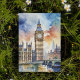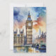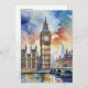 Cette carte postale présente un portrait aquarelle de Big Ben à Londres, en Angleterre.
