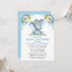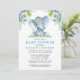 Invitation Aquarelle bleu Baby shower d'éléphant floral