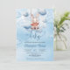 Invitation Aquarelle bleu bébé lapin sur balançoire dans le c
