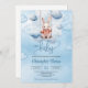 Conception remarquable pour garçon Baby Shower invitations caractéristiques mignon lapin bébé sur balançoire dans le ciel bleu avec des nuages. La typographie de script dit "Oh bébé". N'hésitez pas à me contacter pour les articles correspondants ou la personnalisation. Impressions violettes ©