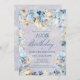 Invitation vos invités à une fête d'anniversaire spéciale avec ce design floral bleu et blanc luxuriant. La calligraphie bleue et le lettrage ajoutent au style élégant. Cet article fait partie de la collection Florale d'aquarelle bleu et blanc. Il contient des modèles que vous pouvez utiliser pour créer rapidement une suite d'invitation unique et des fournitures de fête correspondant.