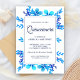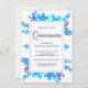 Vous serez éblouis par cette élégante invitation de Quinceanera, avec ses belles fleurs et sa typographie moderne sur un arrière - plan blanc. Ajoutez simplement les détails de votre événement sur cet modèle facile à utiliser pour en faire une invitation unique. Retourner la carte pour révéler un élégant motif de points bleus et blancs au dos de la carte.