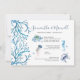 Cette invitation de mariage sur la plage comprend vos noms dans une typographie manuscrite stylisée en bleu marine avec détails de l'événement dans une police serif gris charbon classique sur un arrière - plan blanc croustillant avec une bordure latérale de mon original aquarelle peinte à la main corail de mer. Le design inclut également mon aquarelle illustrée poulpe bleue, étoiles de mer, méduse, hippocampe et crabe bleu. Cette carte invitation revient à une couleur bleue gratuite. Un choix côtier mais décontracté pour la plage décontractée et les mariages balnéaires de Florida Keys. Pour voir les modèles de papeterie mariage, les horaires de fin de semaine, les horaires et les suites comme celui-ci par Victoria Grigaliunas de DoTellABelle visitez www.zazzle.com/dotellabelle