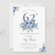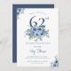 Invitation Aquarelle Bleu Dusty Floral 62e Anniversaire Chic