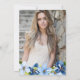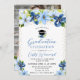 Invitation Aquarelle Bleu Fleurs d'été Graduation