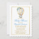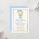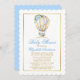 Elégante Aquarelle moderne bleu blanc Floral Hot Air Baby shower Invitation. Comprend de beaux roses bleu aquarelle, des fleurs blanches et de la végétation botanique. Gold et Blue Text. Cadre Or.