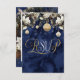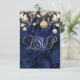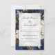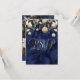 Assurez-vous que votre liste d'invités se remplit rapidement avec ces cartes RSVP de Noël! L'avant est imprimé avec de l'or et du blanc élégants sur une riche texture d'aquarelle bleue encadrée au dessus par des fleurs et des ornements de Noël. Le verso affiche les informations de réponse que vous pouvez customiser. Avec ces cartes, vous ne manquerez pas un seul client !