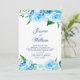 Une Faire-part de mariage joyeuse avec de belles fleurs d'aquarelle de différentes nuances de bleu et vert feuille et un script délicat et élégant avec un arrière - plan bleu clair solide à l'arrière. Pour une belle et tendance Blue Floral thème Celebration entourée par la nature. Vous pouvez modifier le texte à partir du menu Personnaliser. Veuillez me contacter pour toute aide. Des produits correspondants sont disponibles.