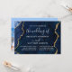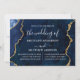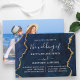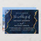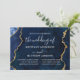 Aquarelle moderne Elégante Bleu et Or Marbre Agate Géode Faire-part de mariage. Script de calligraphie branché. Retour Photo Couple.
