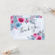 Carte de remerciements de mariage moderne et romantique avec une aquarelle fleurie sur un arrière - plan bleu pâle.