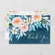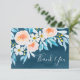 "Montrez votre gratitude dans le style avec ce carte de remerciements mariage moderne avec de beaux roses aquarelles, des fleurs délicates et un feuillage luxuriant sur un arrière - plan sophistiqué bleu marine aquarelle. L'élégante décoration florale alliée à des tons navals riches crée un parfait mélange de design contemporain et de romantisme intemporel. Idéal pour les couples qui veulent un moyen chic et mémorable d'express de leurs remerciements, cette carte de remerciements aquarelle fleurie ajoute une touche d'élégance à toute célébration mariage.