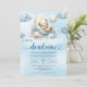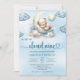 Invitation Aquarelle bleu marron teddy ourson nuage neuf invi