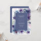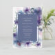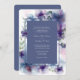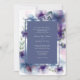 Cette faire-part de mariage fleurie, légère et aérée, conviendra aux mariages en toute saison, mais surtout au printemps et en été. Le devant présente votre texte de mariage personnalisé en gris pâle contre un arrière - plan bleu foncé. La zone de texte est encadrée d'une jolie aquarelle abstraite florale dans les tons bleu, violet et vert, placée sur un arrière - plan blanc. Le dos de l'invitation est bleu correspondant.