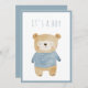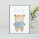 Célébrez l’arrivée de votre bébé garçon avec cette invitation baby shower moderne, avec une jolie teddy bleu doré peinte à la main. Le design minimaliste utilise des bleus et des beiges doux pour un look adorable et tendance. Avec "It’s a Boy" sur le devant et un grand espace pour tous les détails de votre événement sur le dos, cette invitation unique apporte charme et style doux à votre fête des nouveau-nés ou de la pépinière pastel.