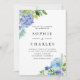 Invitation Aquarelle Blue Hydrangea Fleurs Bouquet Mariage