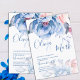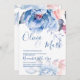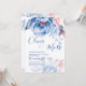 Invitation Aquarelle Blue Peach Floral Cute Script Mariage