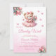 Aquarelle Boho rose Teddy Ours Girl Baby shower Invitation