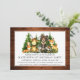 Aquarelle Bois Animaux Première Invitation Anniversaire. Bébé Les animaux comprennent l'ours, le cerf, l'orignal, le raton laveur, le lapin lapin, le renard et la chouette avec en toile de fond des pins. Style Papier Kraft, Pin Vert Forêt, Bois Rustique.