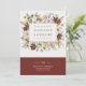 Donnez le ton pour une fête romantique et intemporelle avec notre Faire-part de mariage Botanique Aquarelle Bordeaux. Ce design élégant capte l'essence d'une beauté sophistiquée, avec un cadre délicat rectangulaire orné d'exquises fleurs d'aquarelle dans les tons pastel et bordeaux, le tout gracieusement arrangé contre un arrière - plan blanc immaculé. En bas, un riche rectangle bordeaux offre un contraste saisissant, créant l'espace parfait pour vos détails mariages personnalisables dans une typographie élégante. Le mélange harmonieux de fleurs douces et d'accents audacieux en fait une invitation idéale pour les couples à la recherche d'une esthétique raffinée d'inspiration botanique.