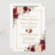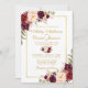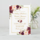 Elégante Faire-part de mariage d'or et de fleurs de marsala bordeaux - Gold Frame - Gold Script - Photo Retour