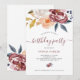 Cette invitation à la fête d'anniversaire branchée présente un joli bouquet floral aquarelle, avec des fleurs et des feuilles dans les tons bordeaux, pêche, gris bleu, blanc et or jaune. La typographie de script moderne apporte une touche de style. Cette invitation à la fête d'anniversaire est particulièrement parfaite pour les fêtes bordeaux, rustiques et automnales.