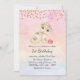 Un beau bébé chat (c'est-à-dire un chaton) en aquarelle peinte à la main avec des fleurs délicates au-dessus de sa tête. L'arrière - plan est très coloré et possède une parties scintillant dorée au sommet. Une carte d'invitation pour célébrer le 1er anniversaire de votre enfant.