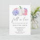 Fall in Love - invitation à la douche nuptiale est décorée d'une citrouille blanche aquarelle, décorée de fleurs d'hydrangée, bleu-violet, couleur rose fumée.