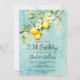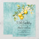 Elégante invitation au 30e anniversaire au citron aquarelle avec une illustration florale et un arrière - plan turquoise. Personnalisez le texte avec les détails du parti.
