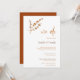 Célébrez votre mariage d'automne avec ce Faire-part de mariage d'aquarelle Burnt Orange d'automne, mêlant des teintes en terre cuite et des fleurs d'aquarelle douce pour une atmosphère rustique mais élégante. Le design minimaliste présente de charmantes calligraphies associées à une palette d'oranges brûlées, capturant l'essence de la saison. Idéal pour les couples à la recherche d'un moyen simple mais sophistiqué pour les clients invitations à leur journée spéciale.