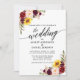 Moderne Élégante calligraphie Le Faire-part de mariage floral mixte comprend des roses bordeaux d'aquarelle, des roses roses roses, des roses rouges, des tournesols et de la verdure botanique.