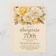 Elégante surprise florale couleur jaune et ivoire/crème pour 70e anniversaire invitation aux femmes. Parce que le texte est personnalisable, cette invitation est conçue pour une femme qui célèbre n'importe quel anniversaire. (18, 21, 30e, 40e, 50e, 60e, 70e, 80e, 90e, 100e... ou tout âge). Le texte, les polices et le libellé sont entièrement personnalisables. Contactez-nous pour obtenir de l'aide sur la personnalisation ou la mise en correspondance de produits.