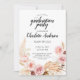 Graduation party de 2022 invitation à la fête avec un bord floral rose verdoyant avec feuilles palmetto et un type de script moderne tendance.