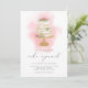 Une belle réception mariage découpée de gâteaux et de punch/cake, parfaite pour des célébrations à la sobriété. Ce design présente un magnifique gâteau à 2 niveaux aquarelle orné de fleurs roses, sur un faux stand de gâteau doré, sur un arrière - plan de lavage à l'aquarelle rose. "cake + punch" est en couleur gris foncé de style calligraphique moderne. Personnalisez avec vos détails en police serif gris foncé. Le verso est doté d'un lavement à l'aquarelle rose.