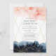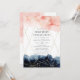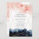 Première invitation de communion sainte avec éclaboussures de peinture bleu marine et rose rousse et cadre géométrique or.