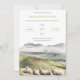 Cette invitation présente une illustration originale d'aquarelle numérique représentant un troupeau de moutons des Highlands avec un fond de montagne tranquille.