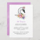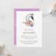 Invitations de fête d'anniversaire à thème cygne de printemps avec des tons pastel rose, violet et parties scintillant or.