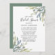 Moderne Elégant Aquarelle Delicate Botanique Verdure Bridal Shower Invitation Card comprend feuillage vert, feuilles bleus poussiéreux et d'autres belles verdure botanique. Sage Green dos.