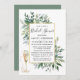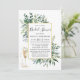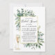 Moderne Elégant Aquarelle Delicate Botanique Verdure Bridal Shower Invitation Card comprend feuillage vert, feuilles bleus poussiéreux et d'autres belles verdure botanique. Cadre Or. Sage Green Back. Verre de Champagne aquarelle au ruban.