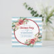 Conception moderne de Noël Invitation avec des fleurs d'hiver aquarelle et des rayures bleues arrière - plan.
