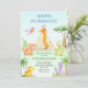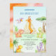 Un mignon dinosaure modèle d'invitation à la fête d'anniversaire pour enfant. Des dinosaures d'aquarelle sont vus autour d'un volcan, avec l'âge de votre enfant en éruption dans la lave. Le texte de typographie indique le nom de votre enfant - une fête d'anniversaire grondante. Personnalisez l'invitation numérique ou imprimée en modifiant avec les détails de votre événement.